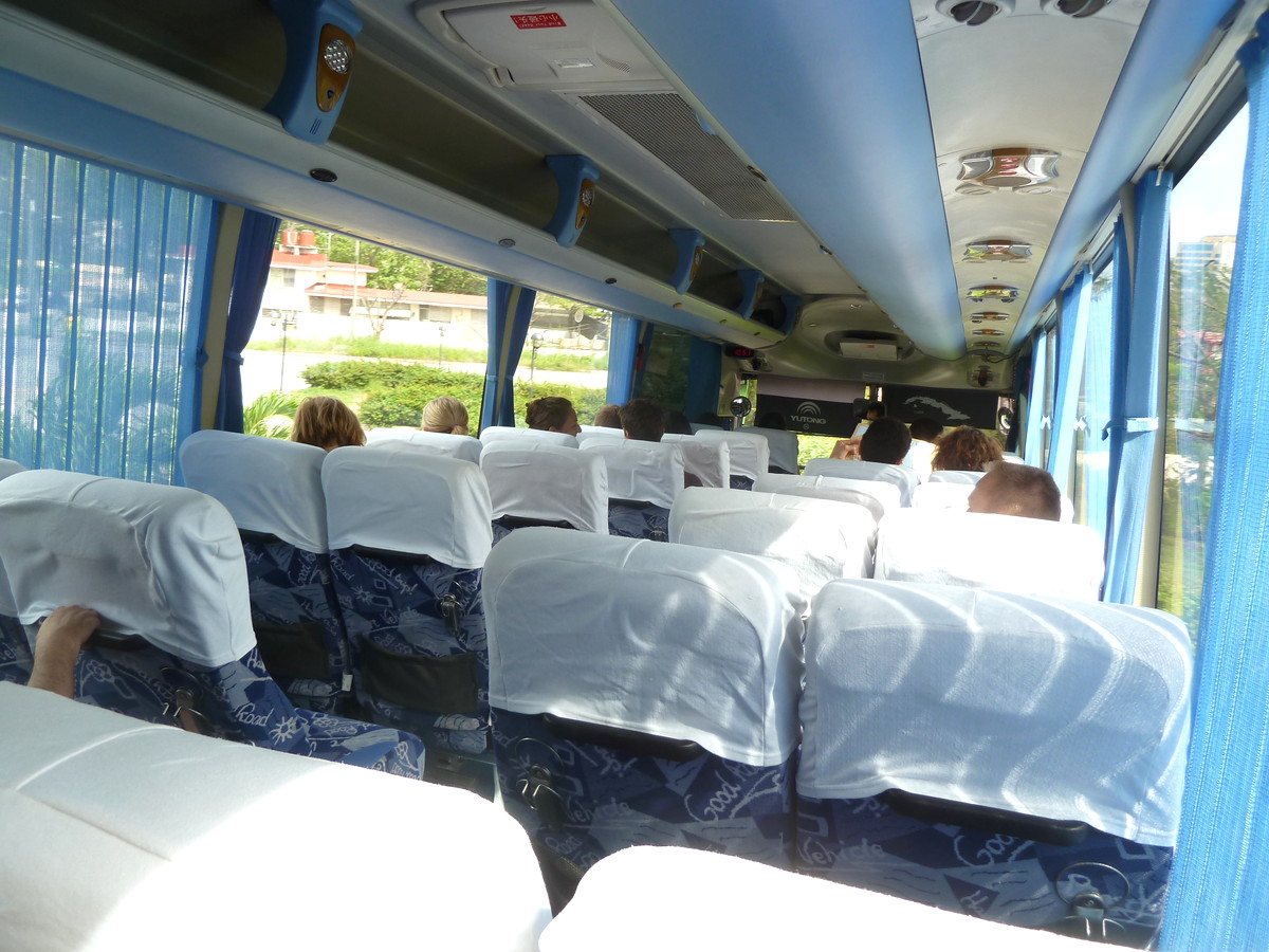 外見と内装とも、ハバナ市民が使うバスとは比較にならないほど豪華。先進国では当たり前のバスだが、キューバでは非常にありがたく感じる。先進国に住むことは多大なストレスがあるが、非常に恵まれた環境であることはまちがいない。