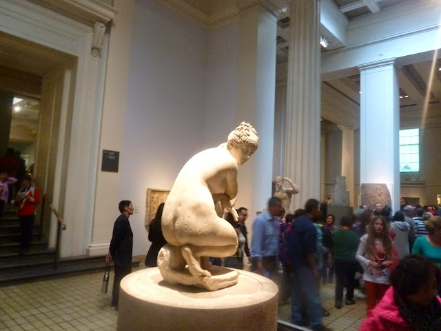 パルテノン神殿の彫刻群を見たあと、再び始めの入り口ロビーに戻る。その途中に出会った女性の彫刻。あまりにもリアルすぎて、こちらを振り返る顔に何も悪いことをしていないのに「ドキッ」とする。